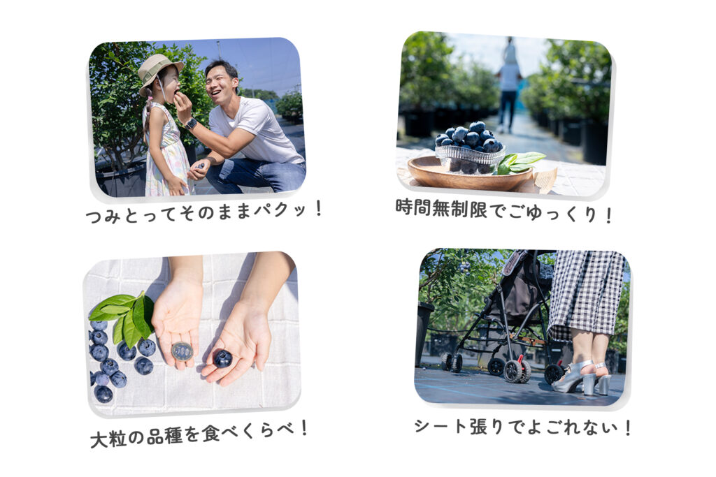 私たちが育てるのは、スーパーのパックでは味わえない「本当に完熟した」甘いブルーベリー。でも、お届けしたいのは果実だけではありません。お子さんの弾ける笑顔、大切な人とゆっくり話す時間、そして、桑名の豊かな自然。 「ここに来て、心が軽くなった」そう言っていただけるような、温かな時間をお届けします。